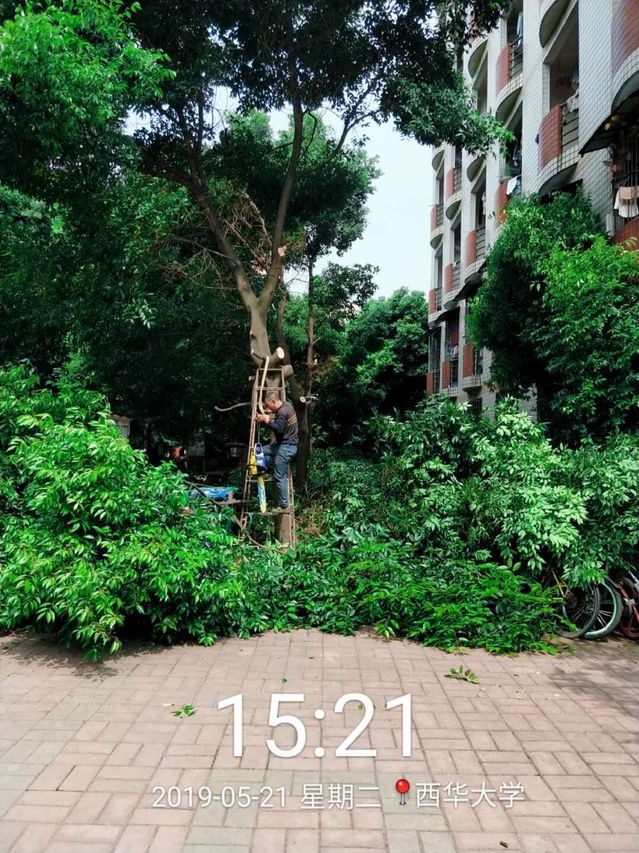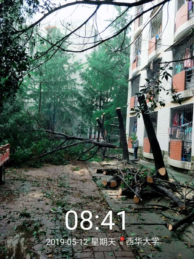 维修中心严格按照学生作息时间安排园区修枝作业时间段,。剔除靠近公寓楼窗户的枝丫,修剪长势过盛的枝头,拉好警戒线,防止不必要的安全事故发生。不少路过的学生看到一颗颗倒地的树枝纷纷拍手叫好,更有甚者发出感叹:“我们终于又重见天日了!”