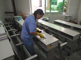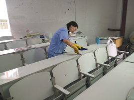 在此基础上,中心保洁人员对考场内的教室桌面进行清洗工作,确保每个考场内的桌面无一个字迹。除此之外,中心按照各考场人数对所有考场的桌椅数量进行了认真核对,针对部分考场缺少桌椅的情况,及时进行了调换、补充,以保证考试所需,并在开考前,中心安排维修人员针对考试教室内的座椅进行全面的检查,发现损坏及时维修。