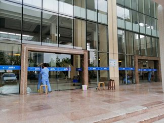 协助4食堂完成食堂门厅玻璃、地面卫生清扫工作