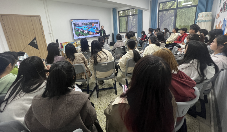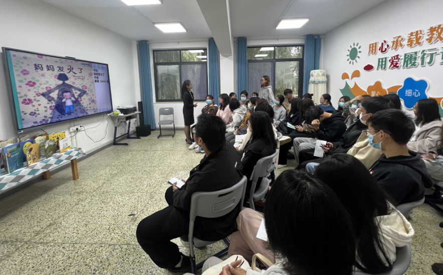 接下来,同学们来到会议室,进行了以“播种幸福,共创未来”为主题的座谈会,兰园长向同学们介绍了幼儿园的基本情况和发展规画,同学们观看了幼儿园精心制作的视频和内容丰富的照片,了解了幼儿园的常规保教及大型活动。兰园长结合《3-6岁儿童学习与发展指南》,让同学们初步明白探寻幼儿生命成长规律对于幼儿教师的专业成长是非常重要的,幼儿的学习方式主要不是通过书本、通过记忆大量抽象的符号来学习,游戏是幼儿极有意义的学习过程和学习方式,幼儿自己的生活是其学习的最重要的途径。绘本是幼儿的阅读工具,兰园长借助绘本《妈妈发火了》和《石头汤》让同学们体验到了“小绘本”里也有“大智慧”。最后,同学们带着“我为我的人生做选择,我为我的选择负全责”的思考离开了幼儿园。