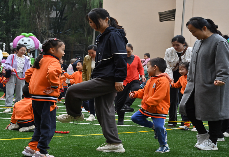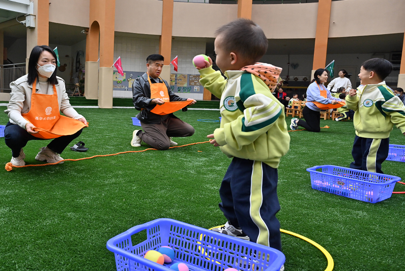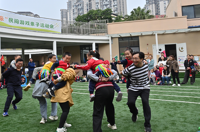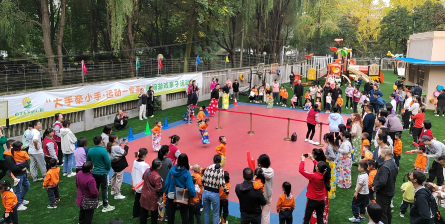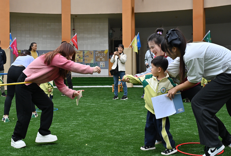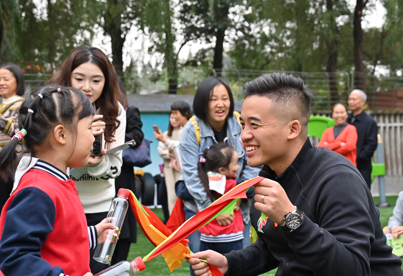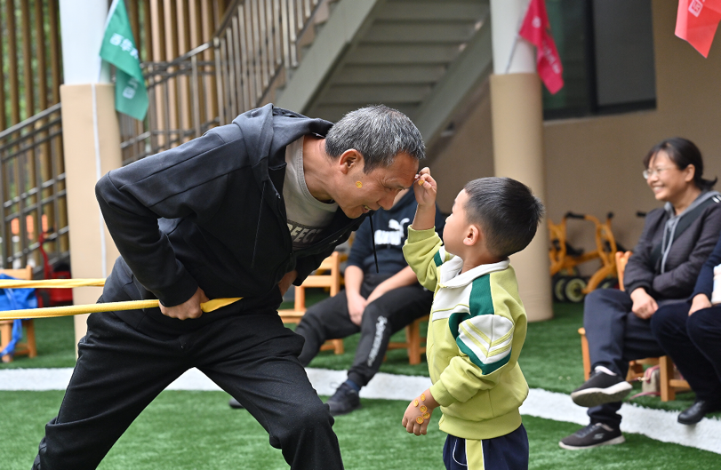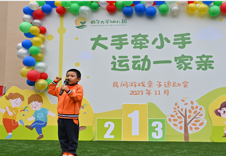 生命因运动而美丽,为培养幼儿热爱运动的好习惯,促进孩子身体健康和谐发展,体验亲子运动的快乐,2138cn太阳城集团幼儿园于2023年11月10日,组织开展了第一届“大手牵小手运动一家亲”民间游戏亲子运动会,全体幼儿与家长积极参与,共同感受运动的乐趣。