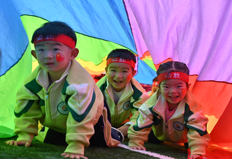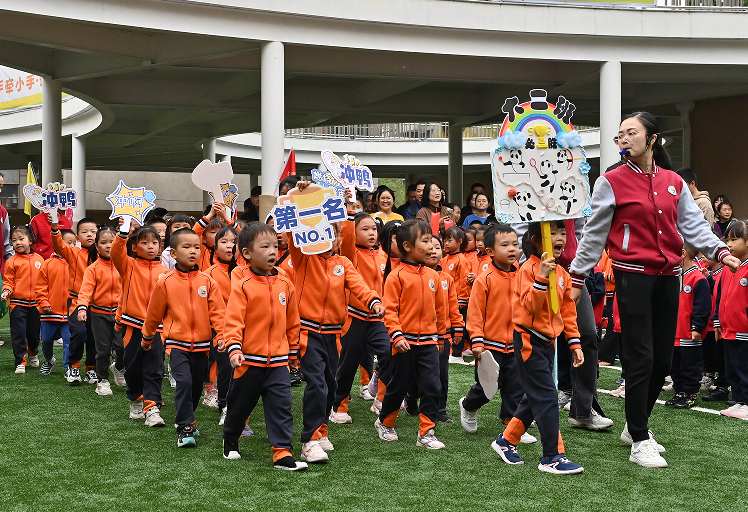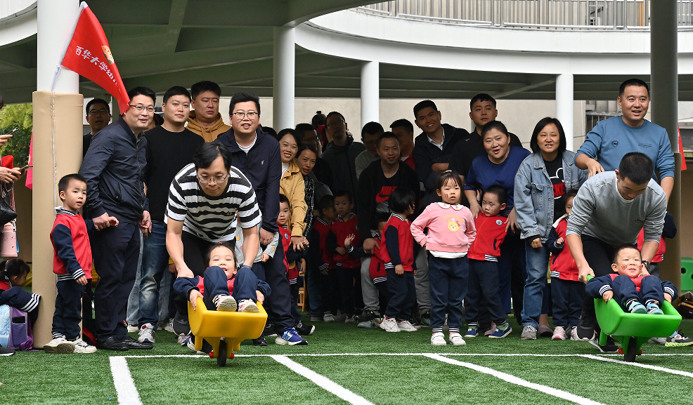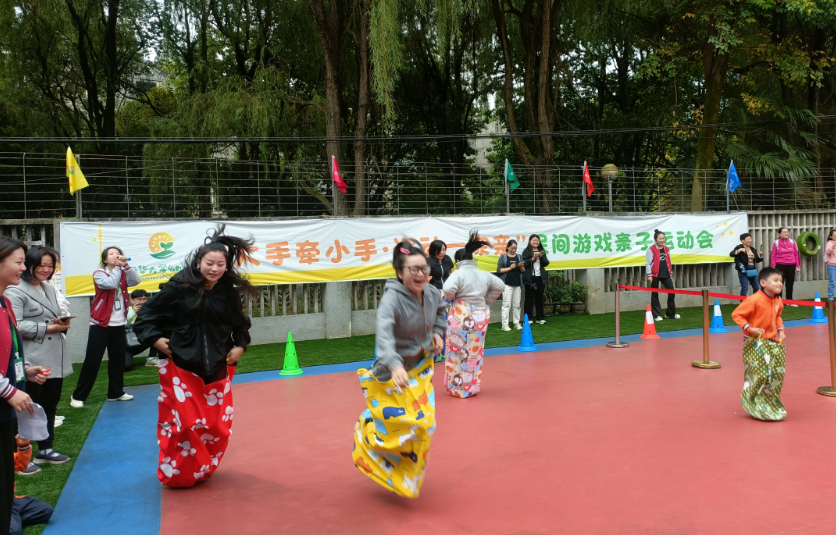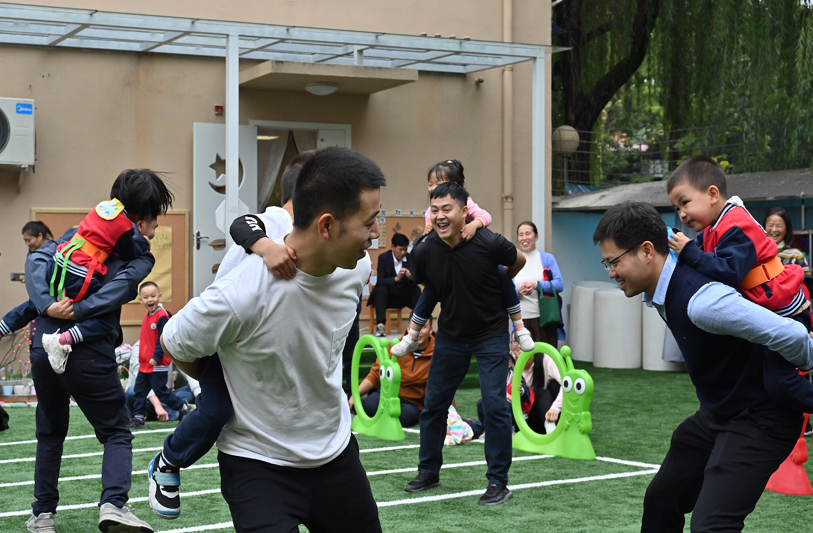 赛场上,推鸡公车、揪尾巴、袋鼠跳……大运动员和小运动员们都不甘示弱,个个奋勇争先,努力拼搏。操场上加油声、呐喊声、欢呼声交织,汇聚成一片欢乐的海洋。