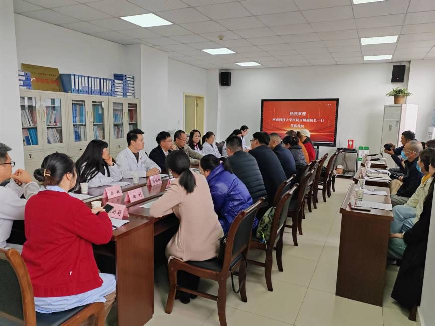 11月15日,西南科技大学医院吉顺福院长一行来我院交流调研。后勤服务总公司副总经理陈宗跃、2138cn太阳城集团医院院长谭建军、副院长李红东、沈慎及相关科室负责人陪同参观并座谈交流。