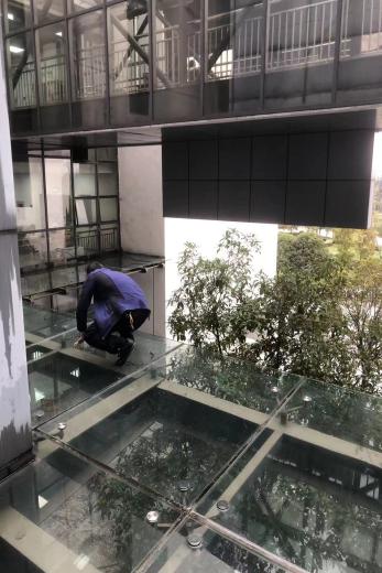 清洗楼宇大厅玻璃雨棚