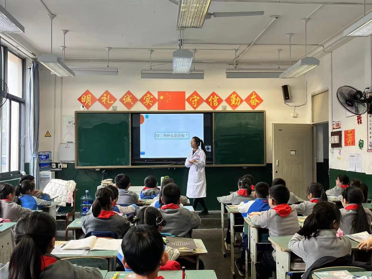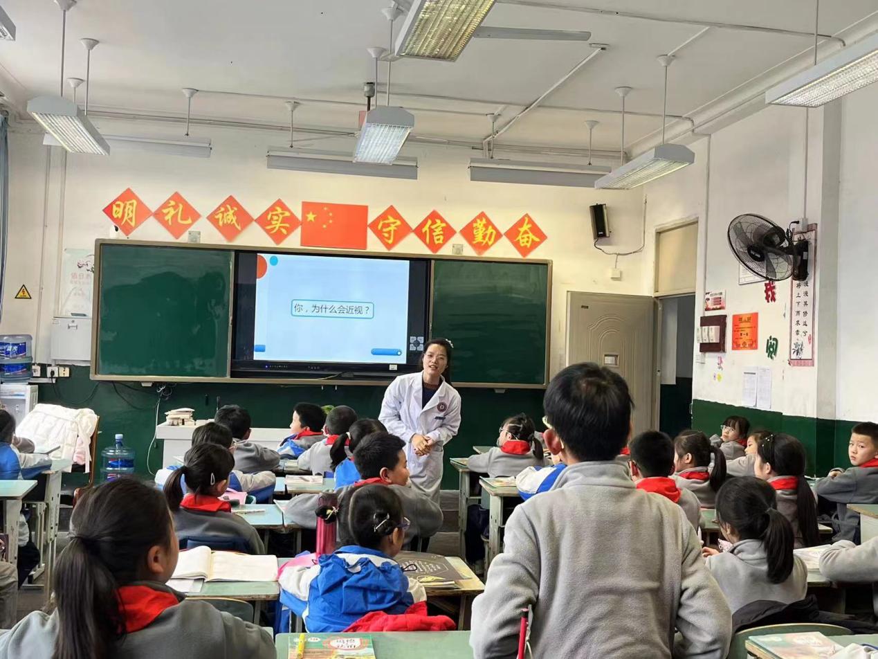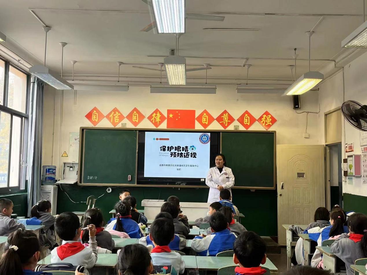 12月11日,成都市郫都区红光街道社区卫生服务中心的张莉医生和同事们走进二年级1班,为同学们召开了“保护眼睛,预防近视”主题班会,为大家进行了爱眼护眼的科普宣讲。