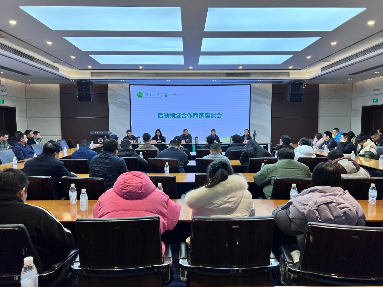 为加强校企沟通,共同营造风清气正的工作氛围,1月5日下午,后勤服务总公司在行政楼101会议室召开后勤领域合作商家座谈会。公司领导班子成员、相关二级部门负责人及后勤领域60余家合作商家参加座谈,会议由公司总经理梁刚主持。