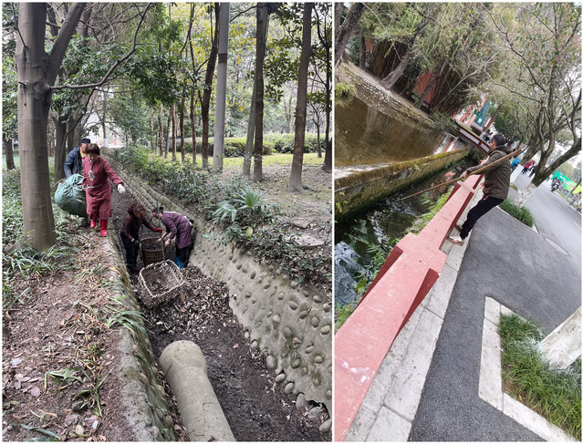 二、抓好环境卫生。对公共道路、湖泊、公厕等区域进行检查,环卫工人继续发扬“不怕脏、不怕累”的精神,齐心协力开展校园卫生“大扫除”,对道路青苔淤泥、沟渠垃圾、漂浮物等卫生死角进行全面清除和清掏。