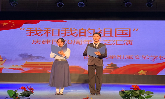 此次活动我们把舞台完全交给了学生,同学们在舞台上用悠扬的歌声和曼妙的舞姿展现出了她们对祖国的热爱,给我们制造了很多惊喜,让我们看到了本校学生才艺双馨的一面,也看到了祖国充满生机与活力的未来。
