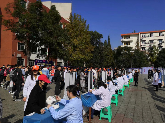 14日上午,义诊团队带诊疗工具、宣传资料、健康礼物,与后勤团委、大健康管理学院和航天航空学院志愿者来到明德广场摆点宣传。他们向路过的师生发放宣传资料,普及流感、结核、饮食营养等健康知识,为师生进行口腔科、皮肤科、骨伤科、五官科、内科等的专科义诊,免费为师生进行血压检测、健康咨询,对师生的饮食、生活等各方面提出合理化建议,对有关疾病并发症进行讲解,并耐心指导用药。