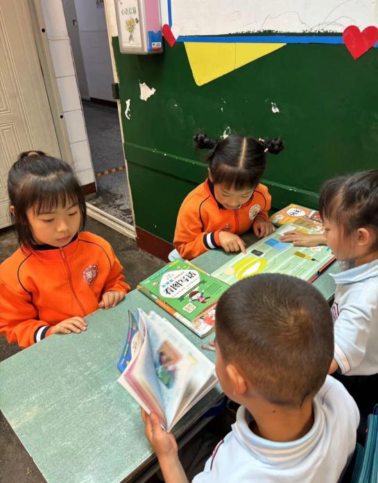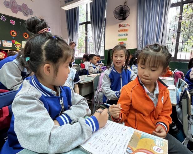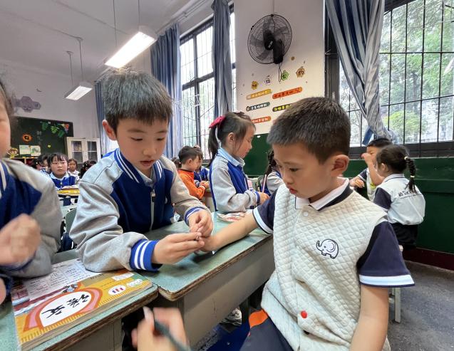 借着课间休息的时间,幼儿园的小朋友们都化身学习小能手,好奇地向哥哥姐姐们寻求心中问题的答案。小学一年级的哥哥姐姐们非常耐心的给幼儿园的弟弟妹妹介绍如何正确握笔,给大家讲讲自己喜欢的课外书,弟弟妹妹们学得可认真啦。
