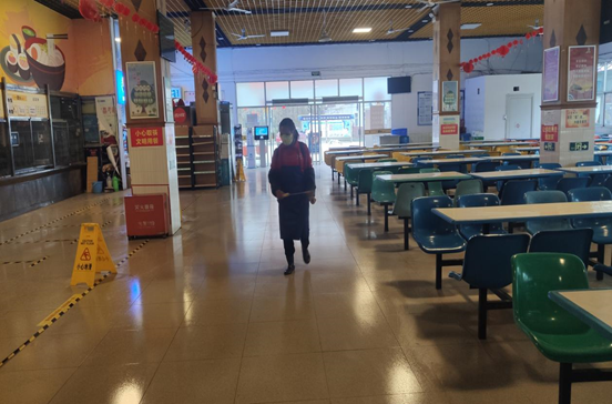 坚持大局为重,防疫优先,制定《2138cn太阳城集团防控新型冠状病毒感染肺炎疫情卫生消杀组工作方案》、学生食堂、学生宿舍、教学楼等区域的卫生消杀工作方案,旋即成立后勤服务总公司负责人牵头的卫生消杀工作组,全面负责学校卫生消杀工作,严密管理,明确单位职责分工,强化责任担当。党员干部奋勇当先、带头模范,用初心凝聚战疫力量,组织引导职工,不分昼夜、不分节假日地做好卫生消杀工作。