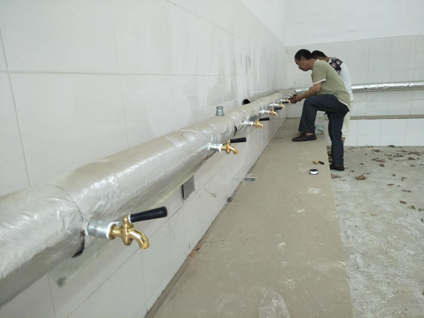 维修过程中,中心维修工作人员对锅炉房中的供水阀门、供水管道逐一检查,对存在漏水的管道,损坏的阀门进行认真勘测、反复确认,中心领导同员工一起制定维修工作方案。为确保学生返校复学后锦地苑、临江苑两处开水房能正常启用中,中心员工高效、快速的安装完开水房内的龙头。另一方面,中心积极联系浴室卡机维保单位,对存在问题的卡机进行更换、维修,力争学生返校后浴室能够提供充足的浴位满足学生洗浴需求。