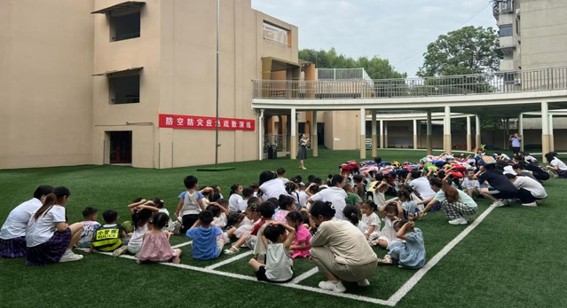呜......警报声再次响起后,孩子们在教师的组织下,弯腰低身、护住头部、沿着逃生路线快速有序地撤离到幼儿园前操场空旷处。到达安全区域后,各班老师立即清点人数上报,整个撤离方案得到全面执行。