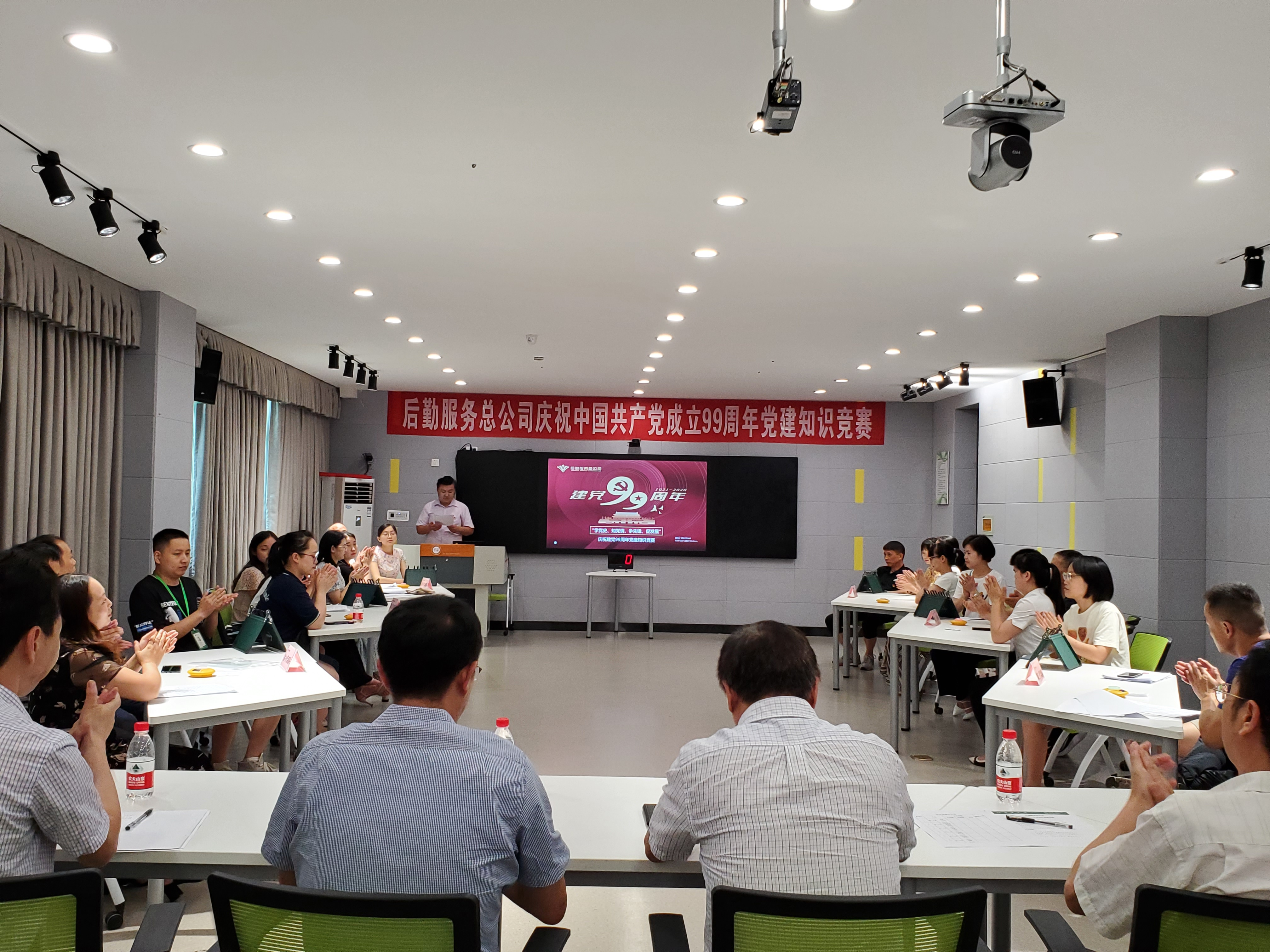 7月9日下午,后勤服务总公司在教学楼3E-105举办了庆祝建党99周年党建知识竞赛暨党员“政治生日贺卡”颁发活动。副校长刘小兵、党委组织部副部长邱刚应邀出席活动。后勤服务总公司全体领导班子成员、各党支部书记及部分党员代表共计50余人参加活动,整个活动由后勤服务总公司总经理助理王丽组织。