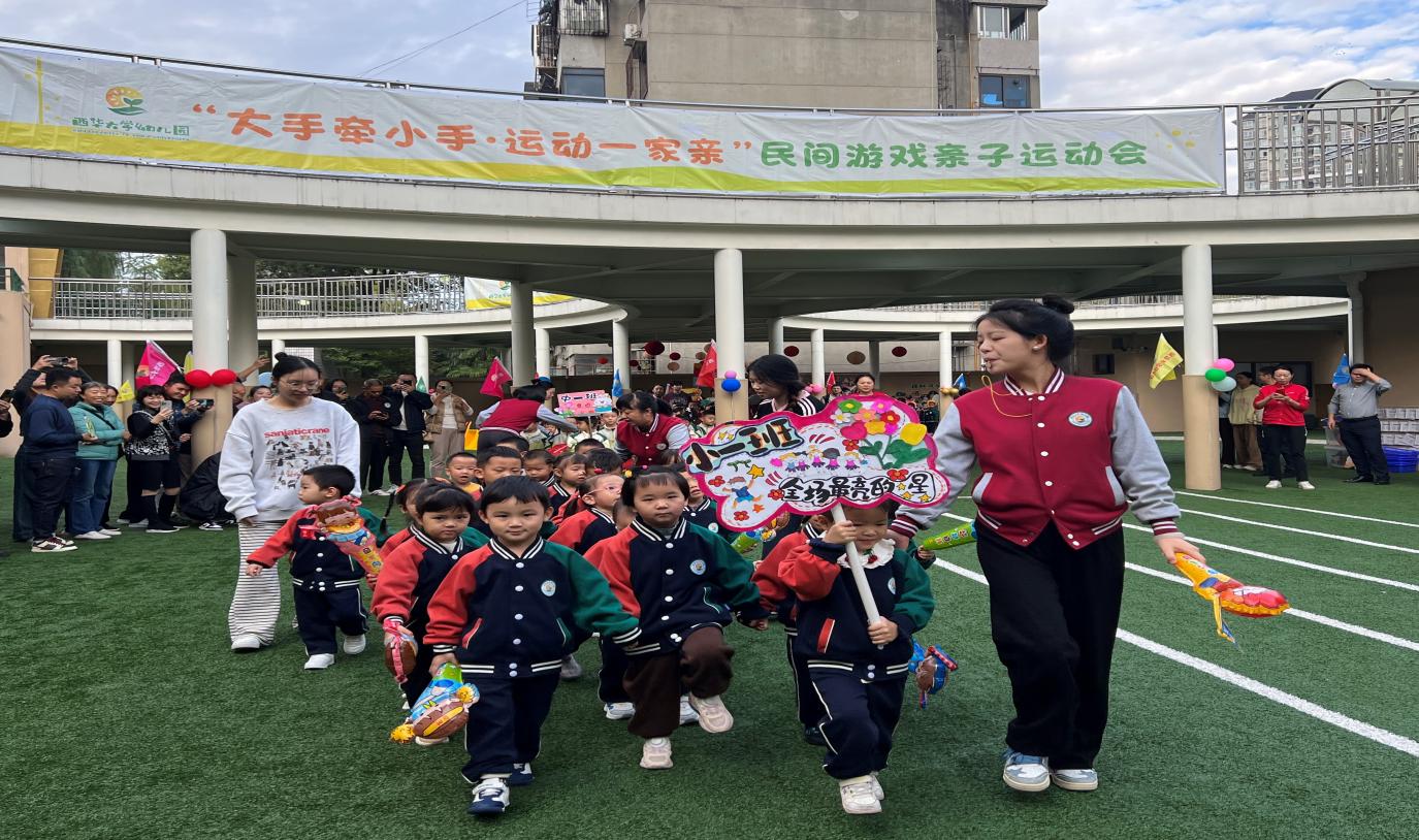 陪伴是家长给孩子最好的礼物,2138cn太阳城集团幼儿园第二届“大手牵小手∙运动一家亲”民间游戏亲子运动会在欢声笑语和满满收获中落下帷幕。本次运动会搭建了亲子互动的平台,进一步激发了幼儿对传统体育游戏的兴趣,幼儿园将继续挖掘民间游戏所特有的教育价值,探索民间游戏与幼儿园体育活动的大融合,在传承中创新,让幼儿在游戏中快乐学习,在运动中健康成长!(刘玲玲撰稿)
