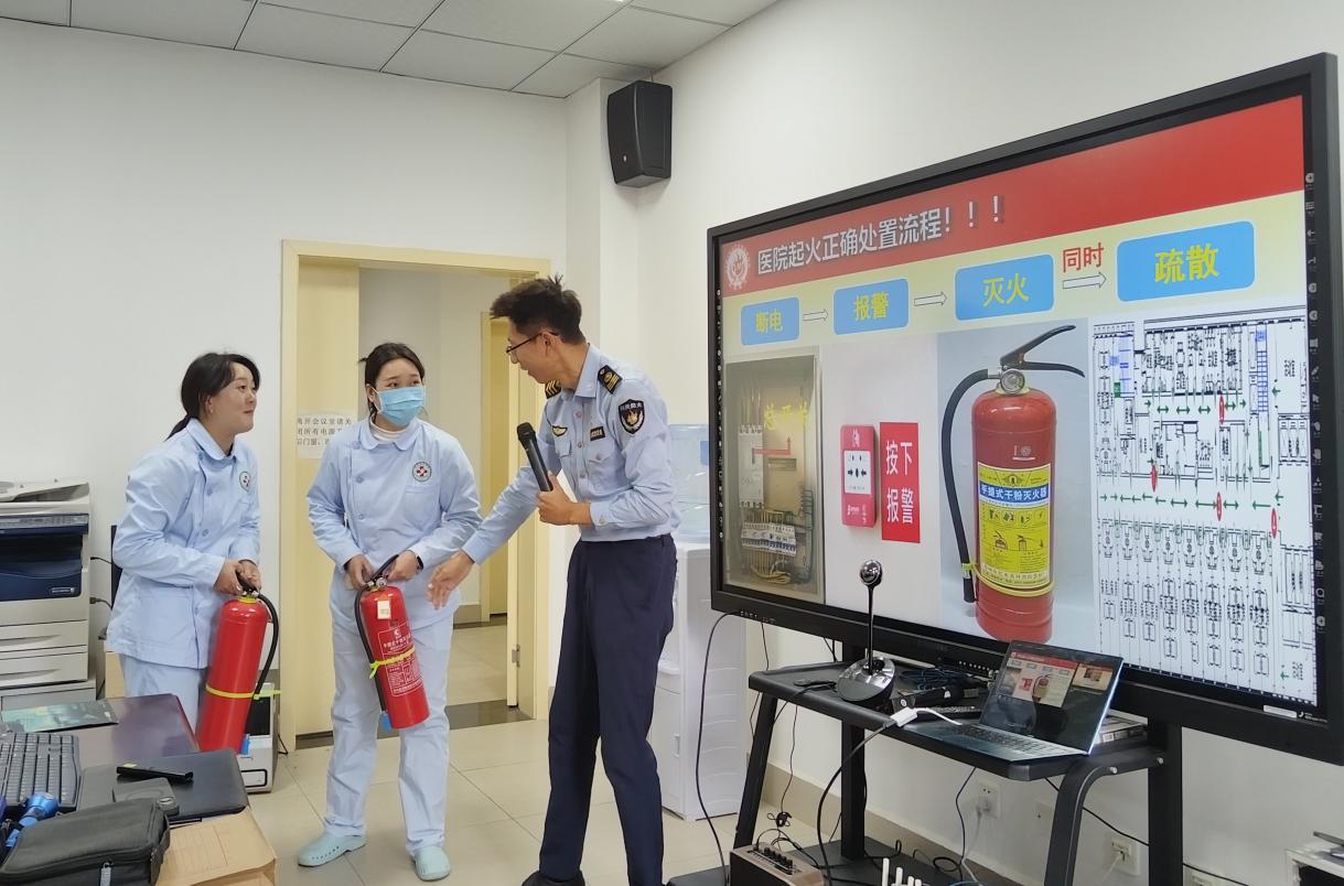 在课堂培训过程中,培训老师结合近期火灾案例,全方位、多层次对“南京高楼小区火灾”、“4.18长峰医院火灾”等事故进行分析讲解,并针对医院的特殊性,重点讲解了医院消防隐患点排查和消防安全及灭火、逃生自救知识。在实地模拟演练培训中,全体职工实地进行了火灾应急疏散逃生演习。
