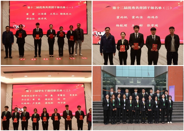 在会议表彰阶段,后勤服务总公司团委书记张芯萌老师宣读了《后勤服务总公司团委关于表彰2023-2024学年先进集体和个人的决定》文件。后勤服务总公司党政办公室安全专员文晓丽老师宣读了第十三届学生干部任职名单。后勤服务总公司各部门(中心)的老师们分别为团委先进集体、优秀学生干部颁发获奖证书,为新一届团委干部颁发聘书。