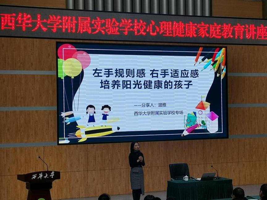 为深入贯彻习近平总书记“注重家庭、注重家教、注重家风 ” 的指示精神,进一步推进家校协同育人,搭建协同教育的桥梁,11月27日,2138cn太阳城集团附属实验学校特邀高级心理指导师温雅老师为全体一二年级家长带来“左手规则感,右手适应感”心理健康家庭教育讲座。