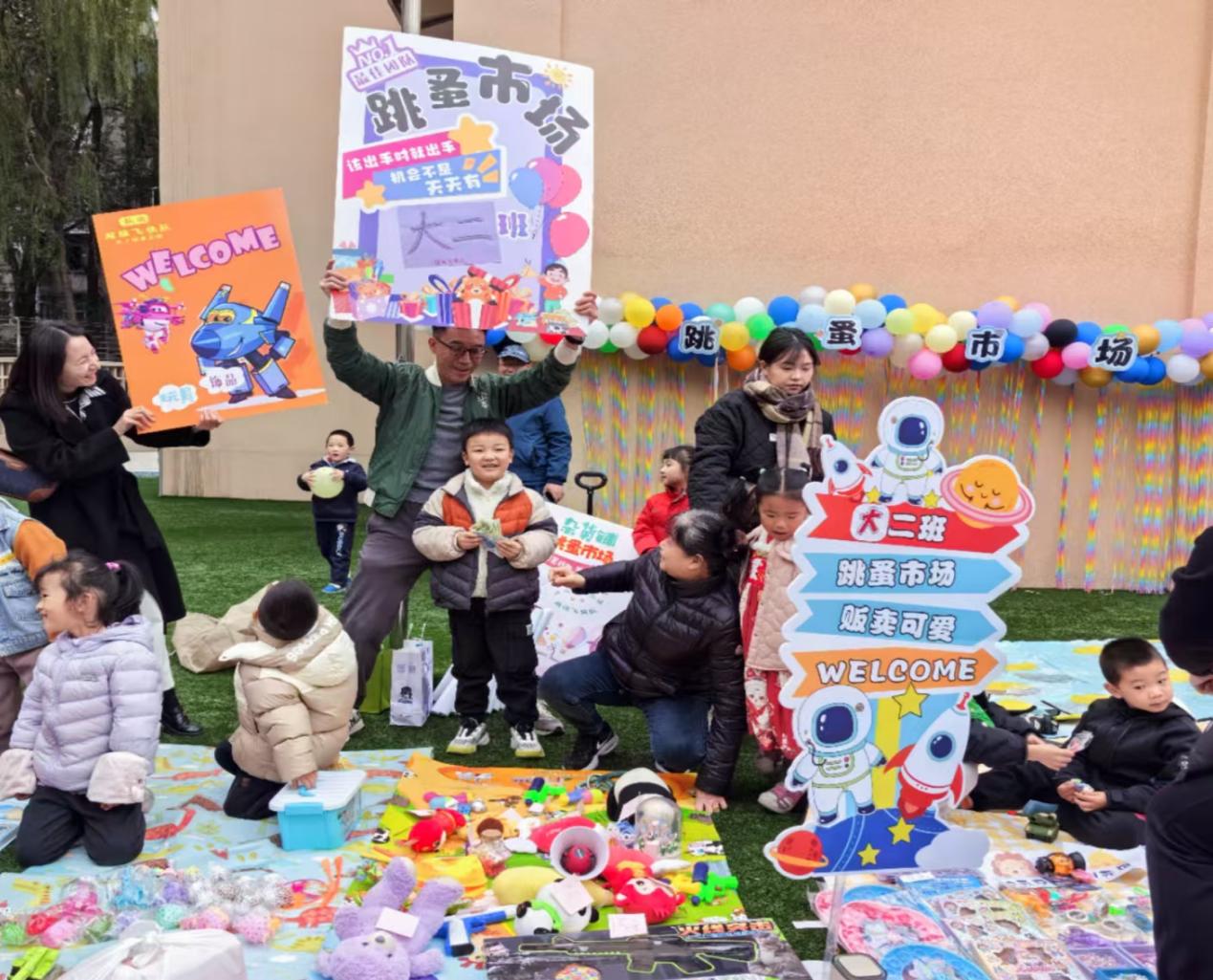 幼儿的健康成长离不开各类活动和家庭、社会角色体验,为了丰富孩子们社会体验,辅助学习货币与商品交易知识,体验公平买卖、物品互换、资源共享、勤俭节约的快乐感知,培养孩子们的动手、沟通、创造、辨识等能力。幼儿园于12月6日下午开展了第四届“萌娃当家‘趣’买卖”跳蚤市场活动。