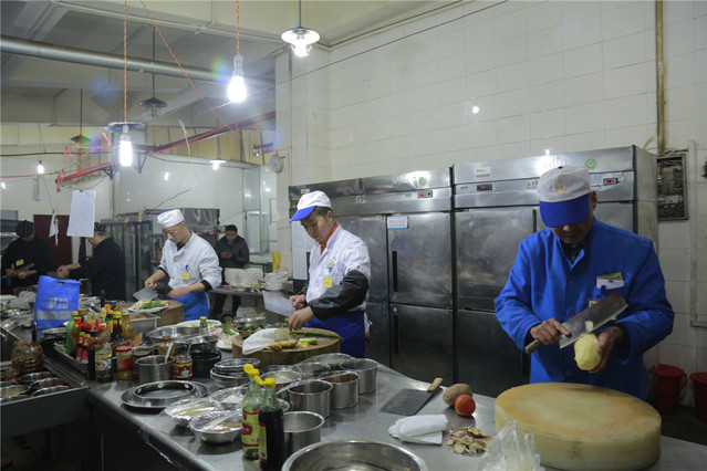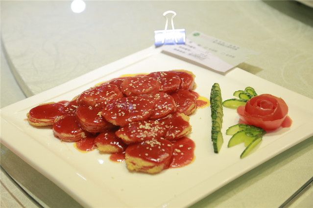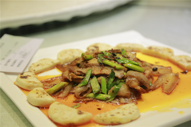在四川省教科文卫工会主席李长青宣布比赛开始后,各参赛选手按照抽签顺序依次进入厨房,着手菜肴的制作。后厨现场,各参赛选手有条不紊地将原材料进行加工,磨刀、切片、雕花、配盘。现场师傅们在忙碌中,还谈到了制作的经验:“回锅肉要煮成八分熟,待其冷却后再切片,厚薄要适当,回锅肉吃的就是外焦里嫩的肉感。”“土豆丝的长短也是很有讲究的,长短与粗细,其实是考验刀工和熟练程度的掌握。”待材料准备好后,比赛师傅们架起炒锅,几勺油一滚,葱姜蒜等配料下锅炒香,再放入肉片翻炒,整个厨房顿时弥漫着回锅肉的香气,金黄色的肉片翻滚在锅中,让人忍不住咽口水。就在师傅们精致地打磨下,一道道热气香喷的菜品烹饪出锅并送至评委面前品尝。