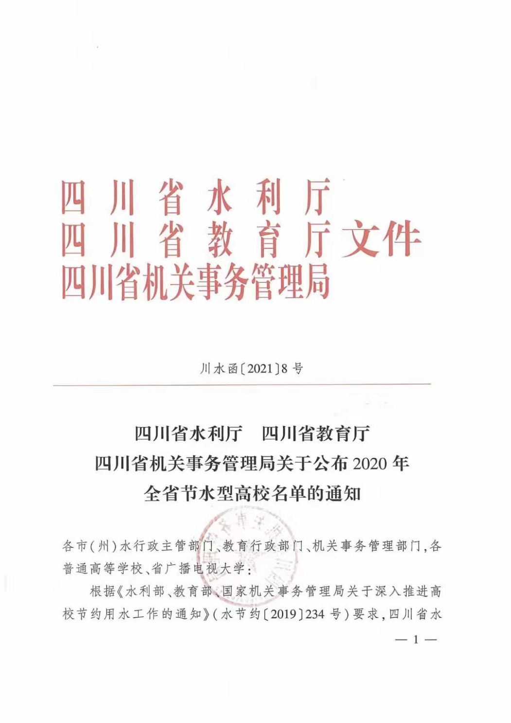 四川省“节水型高校”通知文件