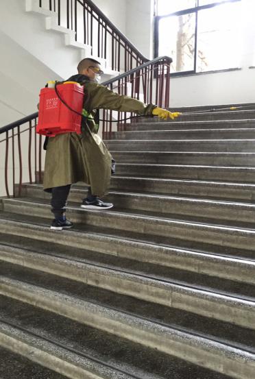 2020年1月12日起,保洁员对楼宇内公共区域、教室内清扫消毒、通风,特别是加强了对重点区域的防疫消杀(包括对公共卫生间水龙头、门拉手等手接触区域的擦拭消毒;卫生间地面、洗手盆、等区域的喷洒消毒以及对楼宇内公共区域地面喷洒消毒),对教学楼楼宇内进行全面洗地打蜡处理,确保教学环境的干净、安全。多媒体管理员集中检修调试多媒体教室设施设备;中心水电维修人员对教室窗户、课桌椅、照明等教学相关设施进行检修,确保开学后正常使用。