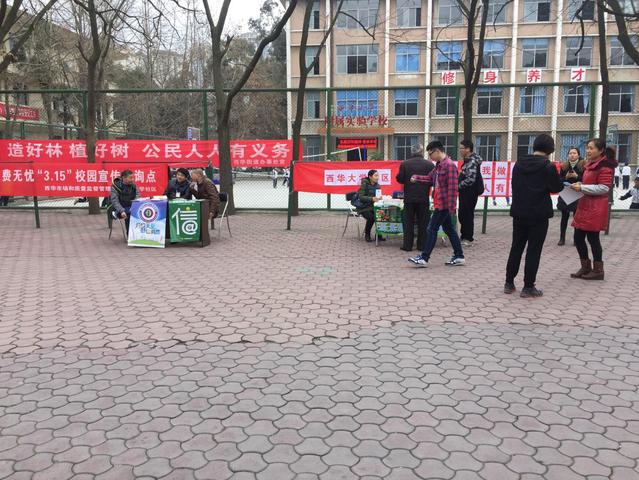 “3·15”为国际消费者权益日,当日上午,成都市金牛区市场和质量监督管理局应邀来到我校,与后勤服务总公司、西华社区一起,共同在2138cn太阳城集团附属实验学校外举办了一场“3.15走进校区食品安全宣传活动”。