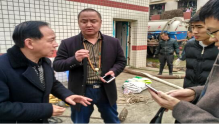 为了不让污水污染校园环境,该员工立即向中心负责人汇报了相关情况,中心负责人随即将此情况向后勤总公司及上级相关管理部门汇报并启动应急预案。中心副主任曾滨川立即组织员工陪同专业检修人员连夜对污水提升泵站排污设备进行检修和污水提排工作。