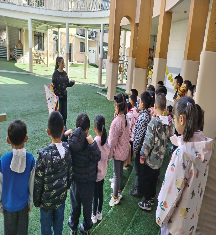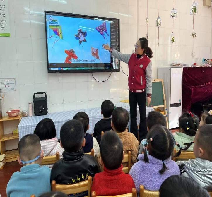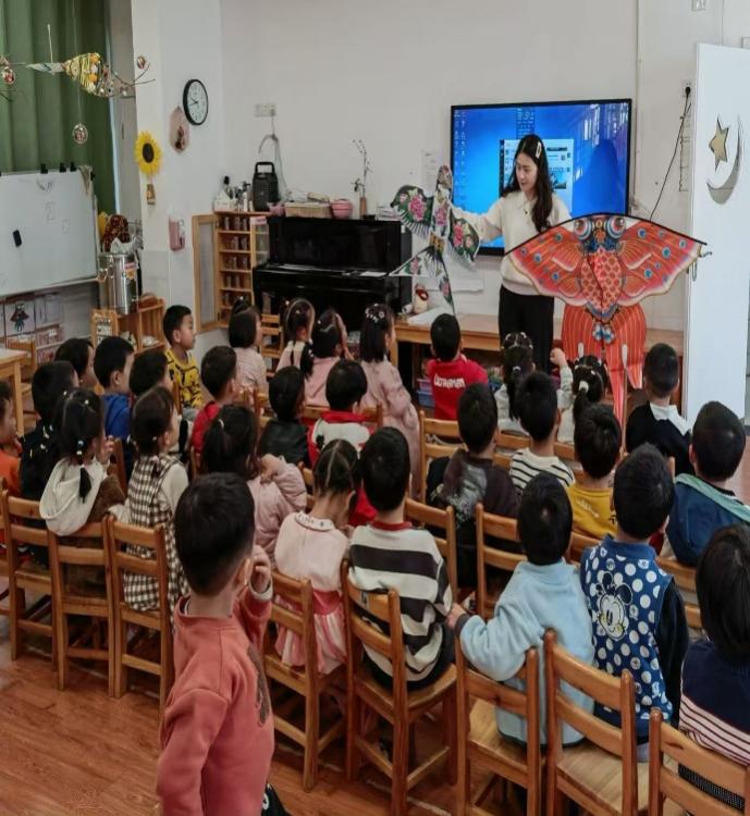 活动前夕,幼儿园开展了为期一周的风筝节主题活动。班级老师通过集体教学活动给幼儿讲解风筝的起源、基本结构和种类,邀请爸爸妈妈和孩子在家里一起制作风筝,让小朋友们初步感受我国民间艺术的魅力。