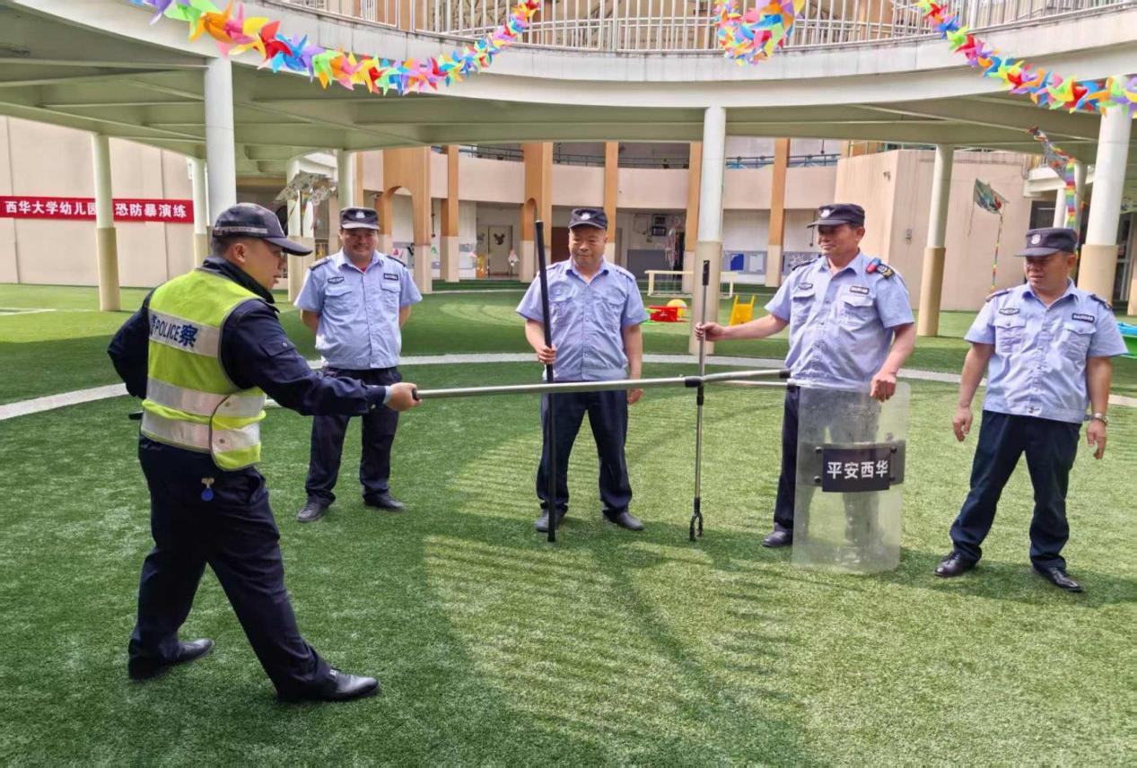 现场提升,强化机制。演练结束后,红光派出所蒙警官对活动进行了现场总结,肯定了应急演练活动组织有序、师幼应对有力,并通过互动的方式对孩子们进行了防暴安全知识讲解。高警官专门对安保人员进行了防暴器械使用培训,进一步强化运用人防、物防、技防联动机制的意识和能力。