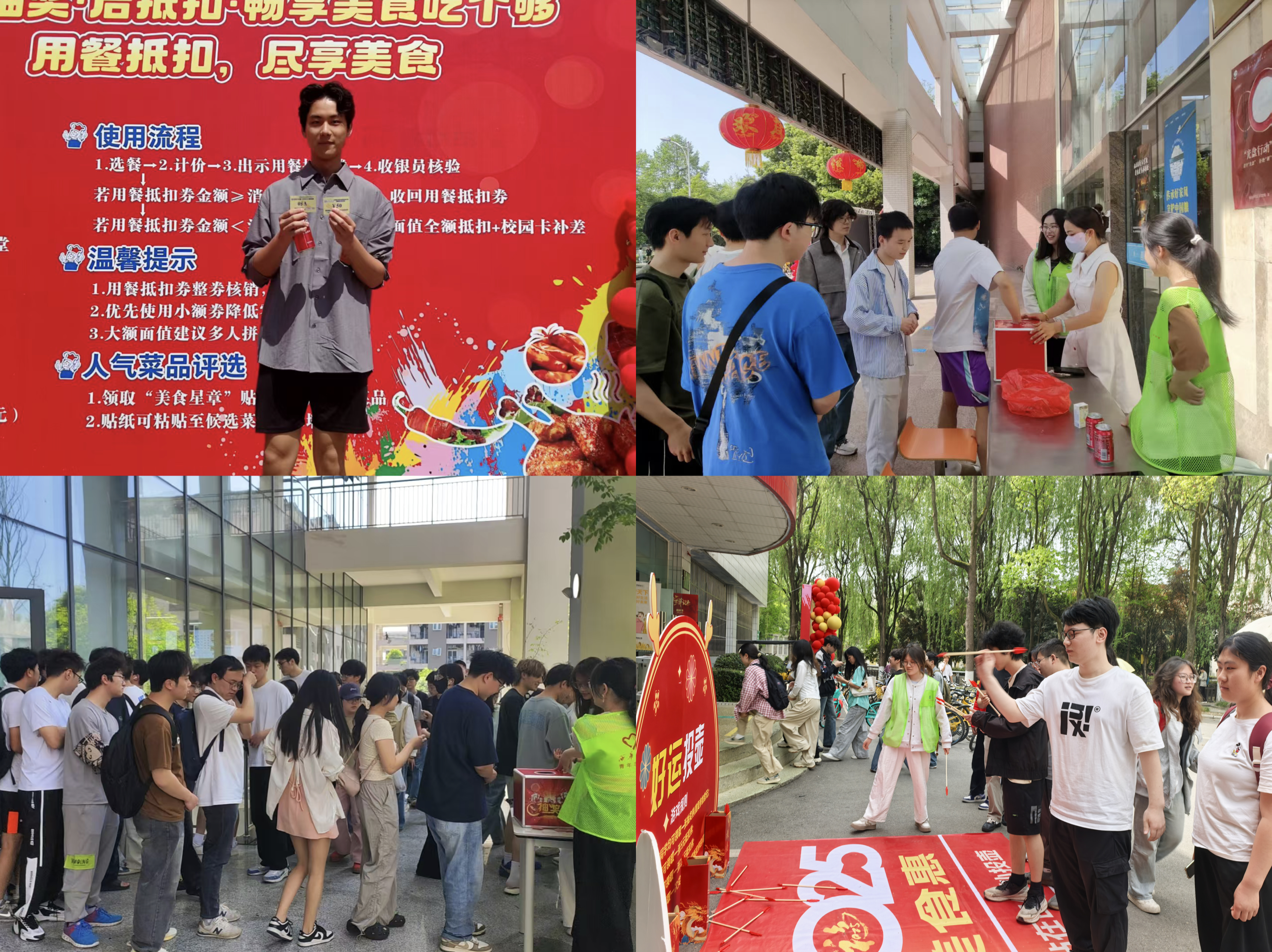 除了美食享受,现场还融入了娱乐互动,抽取用餐取抵扣券、赠送饮品等活动环节。广大师生既能品尝美食、游戏互动,还能享受用餐优惠。本次“美食惠”活动三个校区各食堂同步推出特色中餐与地方小吃,师生可通过领取“美食星”为自己喜爱的菜品投票,得票最多的菜品将在食堂常态化供应。整个活动展现了校园文化的多元与活力,促进了食堂与师生间的交流与沟通。
