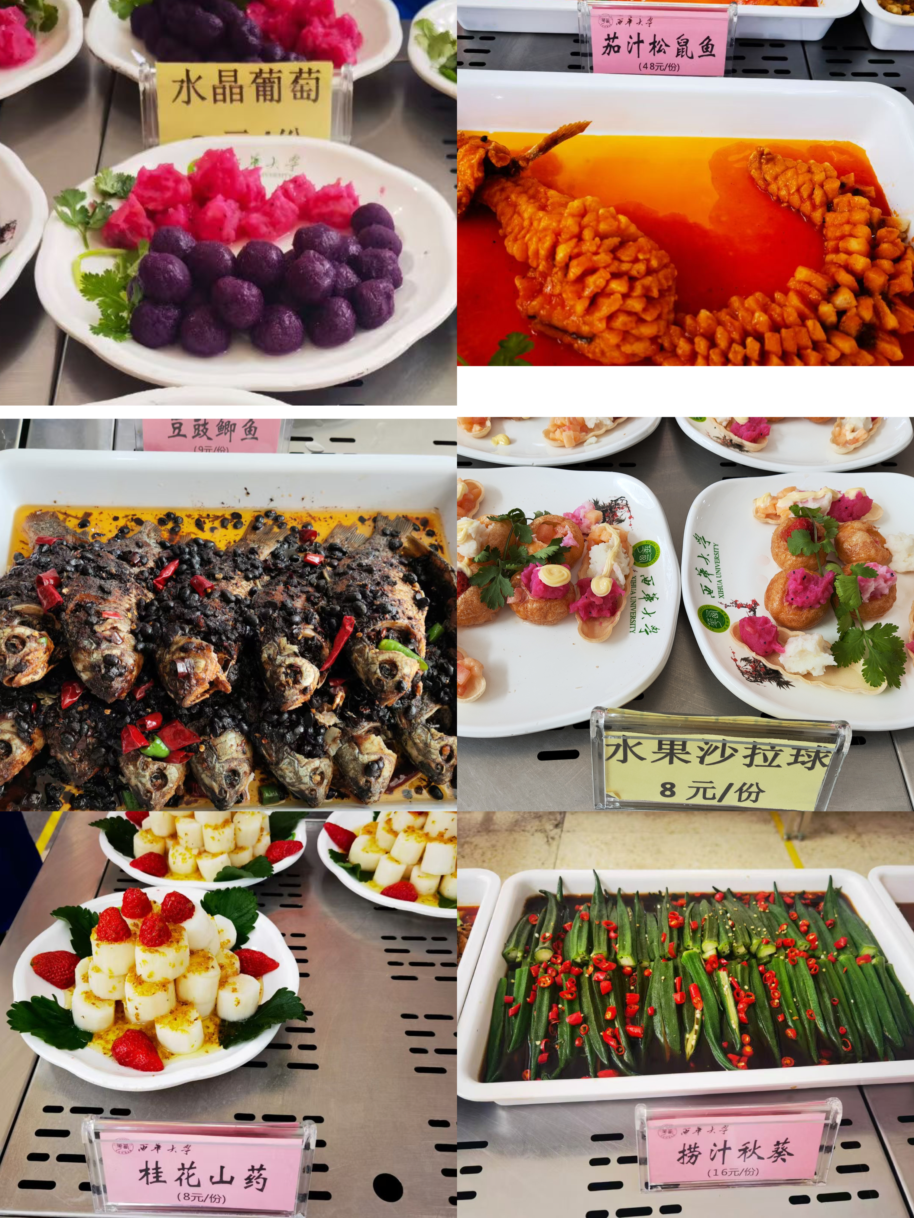 在活动现场,食堂的大厨们纷纷亮出“独门绝技”,精心制作了种类繁多、色香味俱佳的特色美食。精湛的刀工、精心的烹饪、精致的雕花、精美的摆盘,完美展现了食堂厨师们的用心和创意。“松鼠鱼”外酥里嫩,酸甜适口;“水煮牛肉”麻辣鲜香,回味无穷;“捞汁秋葵”清爽开胃,健康养生;“水果沙拉球”、“大枣花卷”“五彩山药”等丰富多样的特色菜品,近百余种特色风味,让同学们深切感受了“舌尖上的西华”魅力,真正体会“吃在川工”的名不虚传。师生们在这次活动中大饱口福,直呼“过瘾”,对我校食堂厨师们的厨艺赞不绝口。