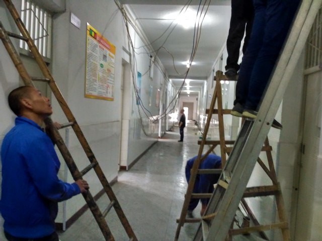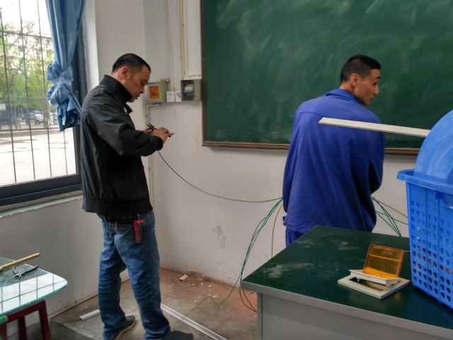 维修班班长说到:“因为施工中难免会对环境产生影响,为了不影响学生们上课,所以我们选择了星期天施工,我们耽搁点儿休息时间没事儿,别把孩子们的学习给耽误了。”该次空调线路敷设其任务重、时间紧、数量大、要求高。师傅们细化分工,加班加点、相互配合、以完成敷设空调线路为目前第一任务,确保以高质量的、准时的完成工作任务。