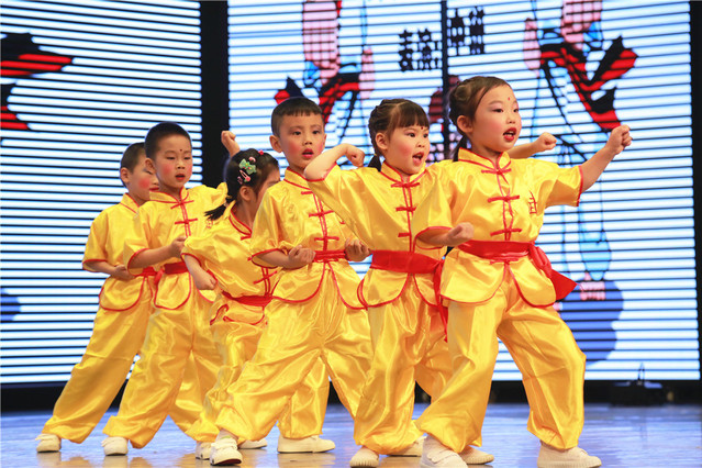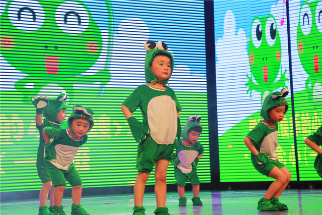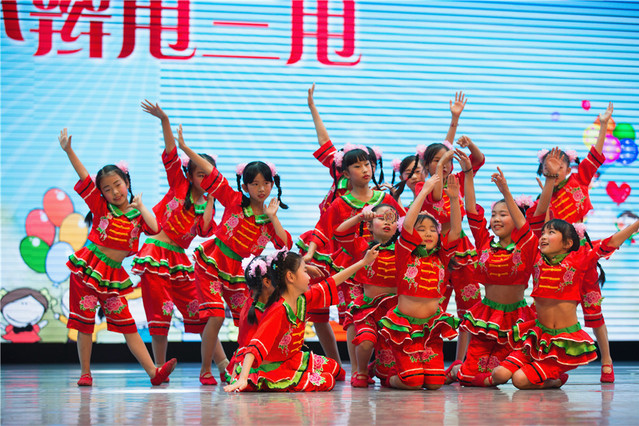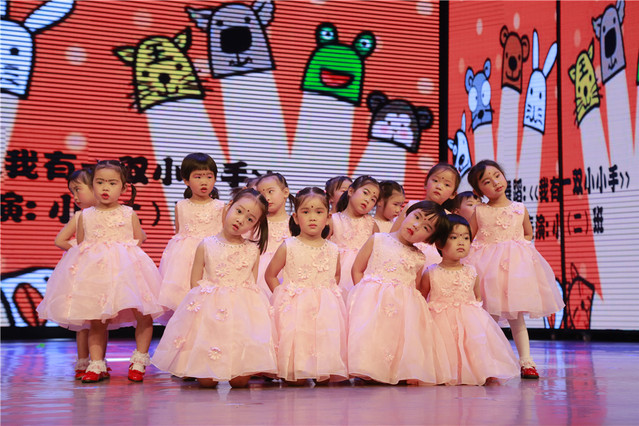 庆祝活动在两位幼儿活泼、精彩的主持中拉开序幕。幼儿园老师们优雅的开场舞表示对孩子们节日的祝福,并将此次活动带入热烈的气氛。小朋友们的表演正式开始,丰富多彩的节目让在场的观众们掌声不断,大班表演舞蹈《阳光下》、《童年水云间》动作整齐划一,十分优美,孩子们都表现出阳光、开心的童真。情景剧《从此不当小皇帝》内容新颖,展示了孩子们健康、活泼、独立的个性品质。中班的幼儿们表演的舞蹈《小小阿诗玛》、《加油加油》等充分体现了宝贝们的天真可爱,武术《嘻嘻哈哈》十分威风,男生们都表现出小小男子汉的英雄气概,赢得了家长的阵阵喝彩。小班幼儿表演的舞蹈《粉可爱》、《我有一双小小手》等稚嫩可爱的表演使在座领导和家长都无比开心和感动。最后,庆祝活动在小主持真切、感人的结束语中画上圆满的句号。
