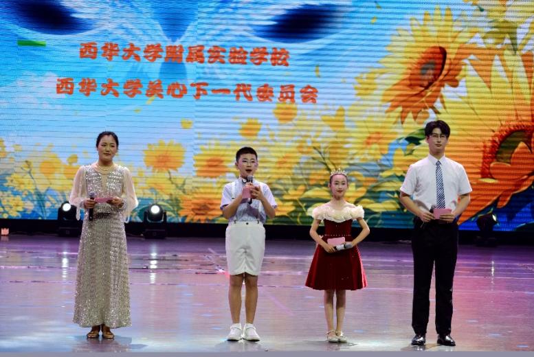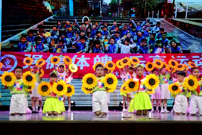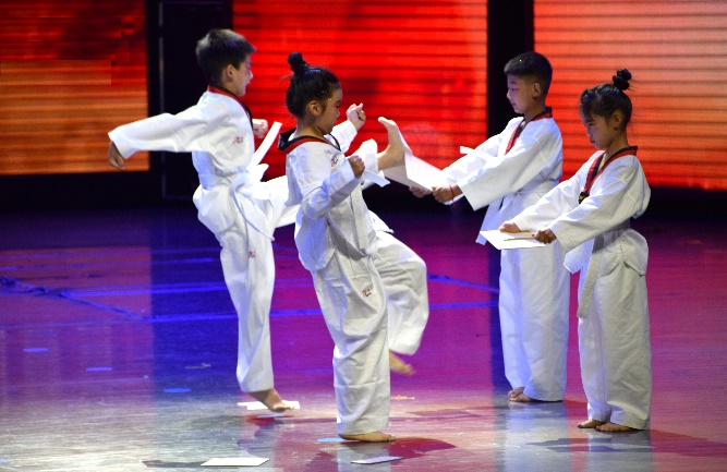 英语配音秀《哪吒踢毽子》带领观众感受了英语口语的魅力。《儿时渔歌》用优美的舞姿唤起了观众对无忧童年的美好回忆。跆拳道兴趣班同学的表演则一招一式尽显武者风范。最后,全体教师与部分学生共同献上温情动人的歌伴舞《花开忘忧》,为整场汇演画上圆满的句号。