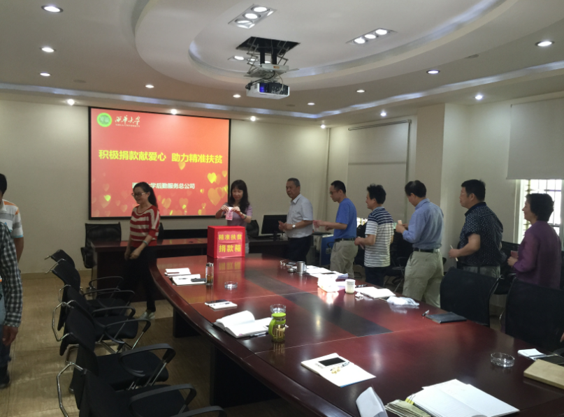 后勤服务总公司于5月18日下午组织召开了精准扶贫爱心捐款动员大会。会上,公司领导班子成员率先垂范,带头捐款,形成以上率下的良好氛围,各党支部书记,部门负责人积极响应,纷纷慷慨解囊,捐款献爱心,助力精准扶贫。同时,公司各党支部积极倡导党员、所属中心职工伸出援助之手,参与此次捐款,以实际行动支持贫困人群,让他们早日脱贫致富。截止目前,后勤服务总公司收到644人,共计15033元的捐款。