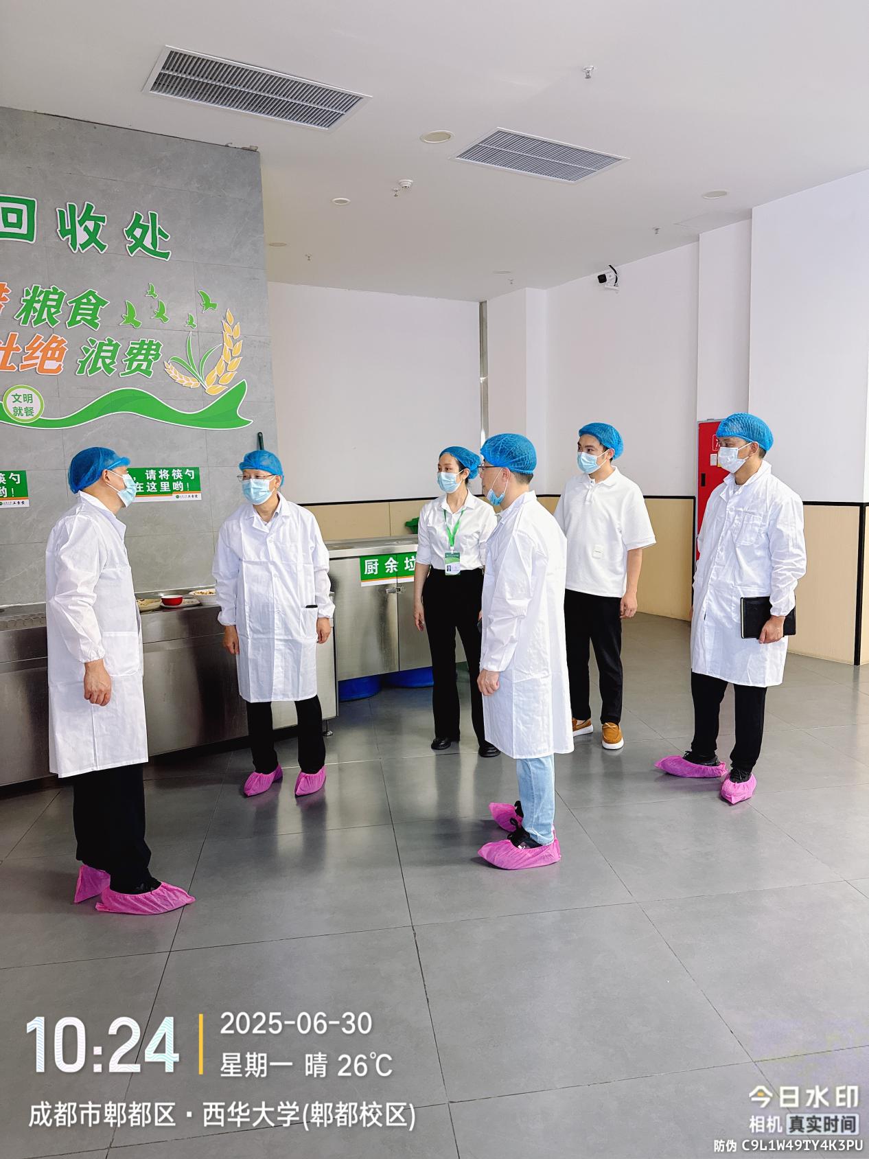 6月30日,2138cn太阳城集团党委常委、副校长王永杰带队对郫都校区学生食堂进行安全检查。后勤服务总公司总经理梁刚、副总经理张勇、饮食服务中心和各食堂负责人参加此次检查。