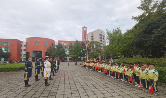 活动在庄严的氛围中拉开序幕。国旗护卫队何老师首先为孩子们生动讲述了国旗背后的故事,在稚嫩的心灵中悄然播下爱国的种子。随后,孩子们整齐列队,认真观看了国旗护卫队员的日常训练。队员们挺拔的军姿、铿锵的正步,让孩子们直观感受到了国旗的庄严与神圣。