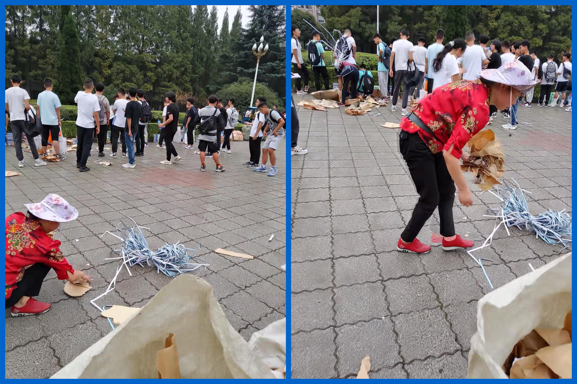 一如既往,用心迎新。根据学校安排,全校新生将在四教广场领取教材,为了给学校师生服好务,中心员工定点保洁,及时将包装纸打包清运,值班人员坚守岗位,勤勤恳恳,任劳任怨,直到教材领取工作结束后,大家才收拾好疲惫的身躯缓缓离去。