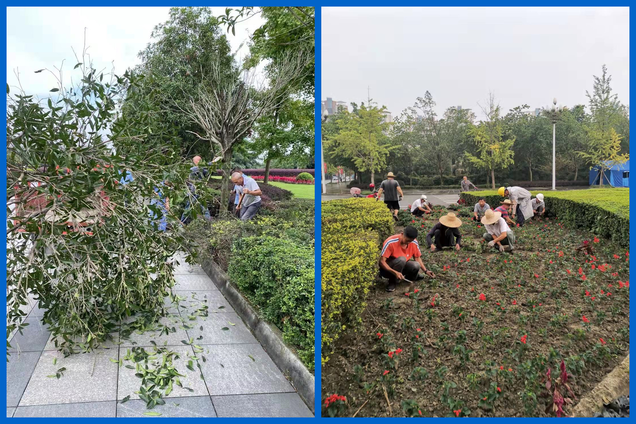 暑期不停歇,全力迎新生。中心针对假期工作做出全面的部署和安排,每天坚持校园公共区域的卫生消杀和路面冲洗,定期组织清除卫生死角,不留盲区,加强人工湖、池塘的日常管理,保持水量充足,湖面清澈,全面排查全校的绿化树木,重点修剪和整理枯枝干树,及时补栽,全面更换行政楼、一教花园等重点区域的草花,定期浇水,保持枝叶繁茂。校园环境工作涉及到方方面面,尽管烈日炎炎,但是中心员工不怕辛苦,始终坚守在工作岗位上,坚持放假与不放假一个样,使校园环境四季如春,迎接新同学的到来!