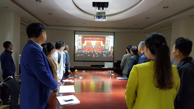 10月18日上午9时,举世瞩目的中国共产党第十九次全国代表大会在北京隆重开幕。后勤服务总公司党员干部、教职工通过电视、网络等媒体收看十九大开幕式,认真聆听习近平总书记代表十八届中央委员会在十九大上所作的报告。公司领导班子及第一、二党支部党员在公司会议室集中观看。