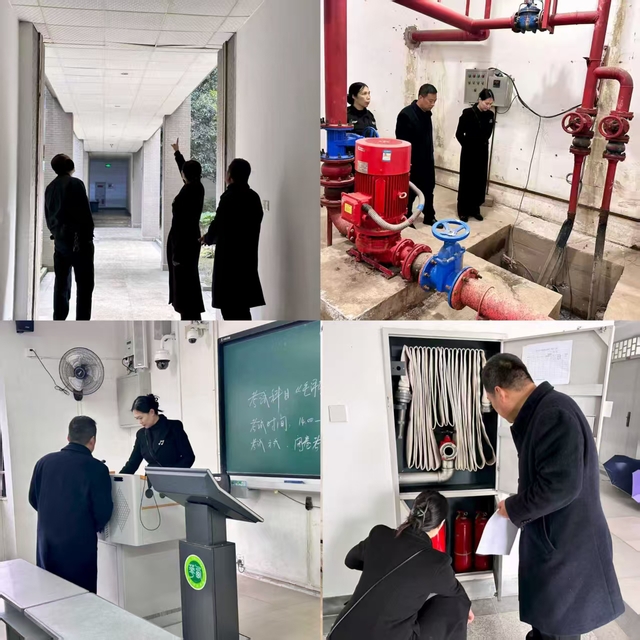 本月,物业管理中心与华玮物业组成联合检查小组,分别对自己辖区内研究生自习室、消防通道等人员密集区域和消防泵房开展专项安全检查。检查人员细致排查消防设施配备、疏散通道畅通情况,及时整改各类潜在隐患。