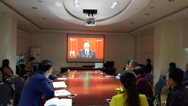 10月18日上午9时,举世瞩目的中国共产党第十九次全国代表大会在北京隆重开幕。后勤服务总公司党员干部、教职工通过电视、网络等媒体收看十九大开幕式,认真聆听习近平总书记代表十八届中央委员会在十九大上所作的报告。公司领导班子及第一、二党支部党员在公司会议室集中观看。