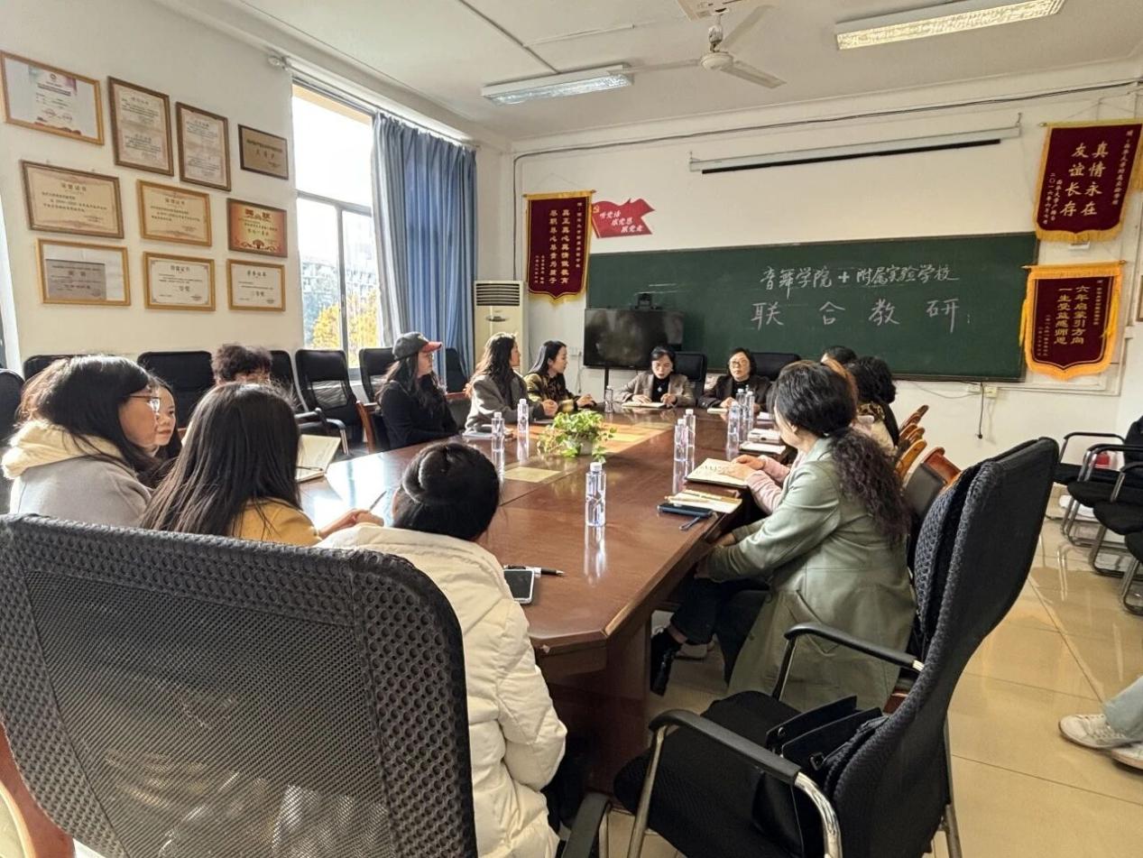 为深化高校与基础教育的衔接,共探卓越教师培养路径,11月20日下午,附属实验学校与音乐与舞蹈学院开展联合教研座谈活动。活动聚焦一线教学实践与高校人才培养的衔接、教师成长、本科教育优化及未来合作方向进行了热烈讨论。音乐与舞蹈学院张雪梅老师带领小学教育教师及学生团队一行12人与附属实验学校骨干教师参与了此次联合教研活动。