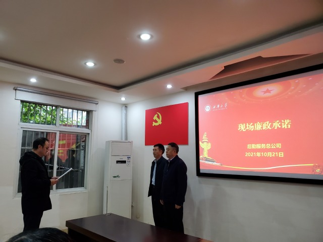 会上,公司全体领导签署了全面从严治党责任书和廉政承诺书。副总经理刘俊向党委书记赵东和总经理梁刚作现场承诺;饮食中心经理张鹤向刘俊作现场承诺。下属各中心负责人分别与公司领导现场签订了廉政承诺书。