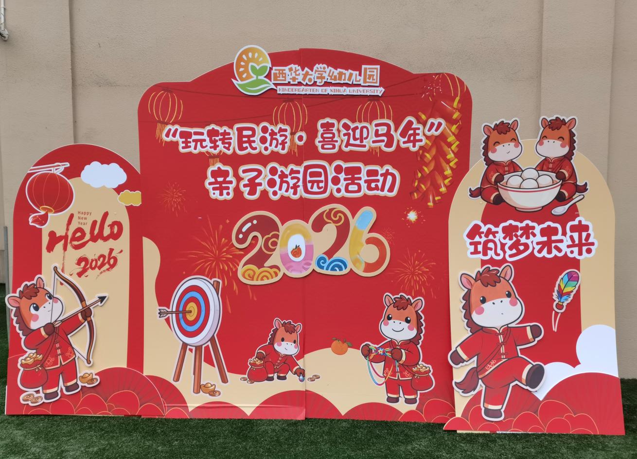 为迎接2026新年的到来,让孩子们了解传统节日的意义,传承民俗文化,体验欢乐喜庆的中国年味,12月31日下午,幼儿园开展了“玩转民游·喜迎马年”民间游戏亲子游园活动,后勤保障部负责人、幼儿园师生及家长等400余人参加活动。