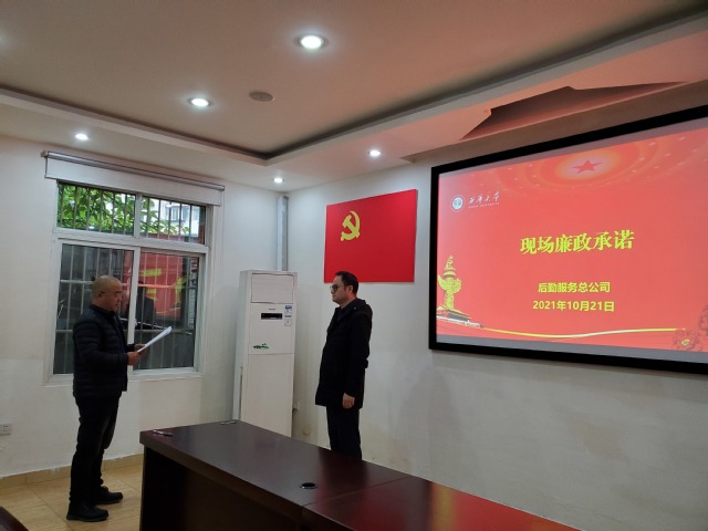 会上,公司全体领导签署了全面从严治党责任书和廉政承诺书。副总经理刘俊向党委书记赵东和总经理梁刚作现场承诺;饮食中心经理张鹤向刘俊作现场承诺。下属各中心负责人分别与公司领导现场签订了廉政承诺书。