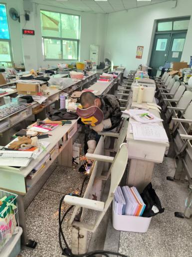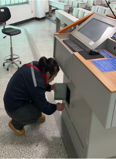 开学前夕,物业管理中心提前组织全体保洁人员,开展校园公共区域全覆盖、无死角的深度保洁行动。保洁人员重点对教学楼、公共走廊、楼梯间等核心区域进行全面清扫,细致擦拭门窗、墙面、扶手及课桌椅,彻底清理卫生死角,全面优化校园环境面貌,为师生返校营造干净整洁、舒心有序的学习工作氛围。与此同时,中心安排专业技术人员,对全校教室多媒体设备开展拉网式排查与调试,逐一核查投影、音响、中控等设备运行状态,发现故障部件,第一时间通知维保单位维修更换,确保所有教学设备能够正常使用;组织维修人员对课桌椅、门窗等教学设施进行细致检修,及时处理松动、损坏等问题,保证教学设施完好可用。秩序维护队教学楼及巡查人员则聚焦消防安全,重点检查教学楼消防栓、消防通道、从源头消除消防安全隐患,切实筑牢教学设施与校园消防安全双重防线。