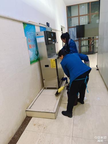 中心员工正在进行开学前各项物业准备工作