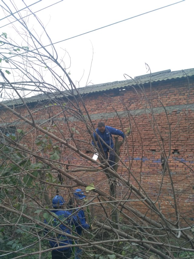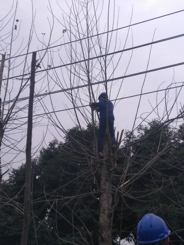 沿线的树木长势迅猛,逐渐穿过了高压线生长,已经抢夺高压线的“地盘”,若与高压线接触后造成短路,不仅给学校用电造成隐患,还可能形成供电安全事故。据维保公司工作人员介绍,按照《电力设施保护条例实施细则》的规定,高压电线与周边建筑物、树木等物体的距离必须大于安全距离。这批高压线虽然已经是绝缘线,但电力输送是不容有“万一”产生的,如果出现意外,线路上承载的学校供电将成问题。本次清理修枝工作时间紧、任务重,相关单位派出经验丰富的技术人员,登高作业,为树木“理发”。